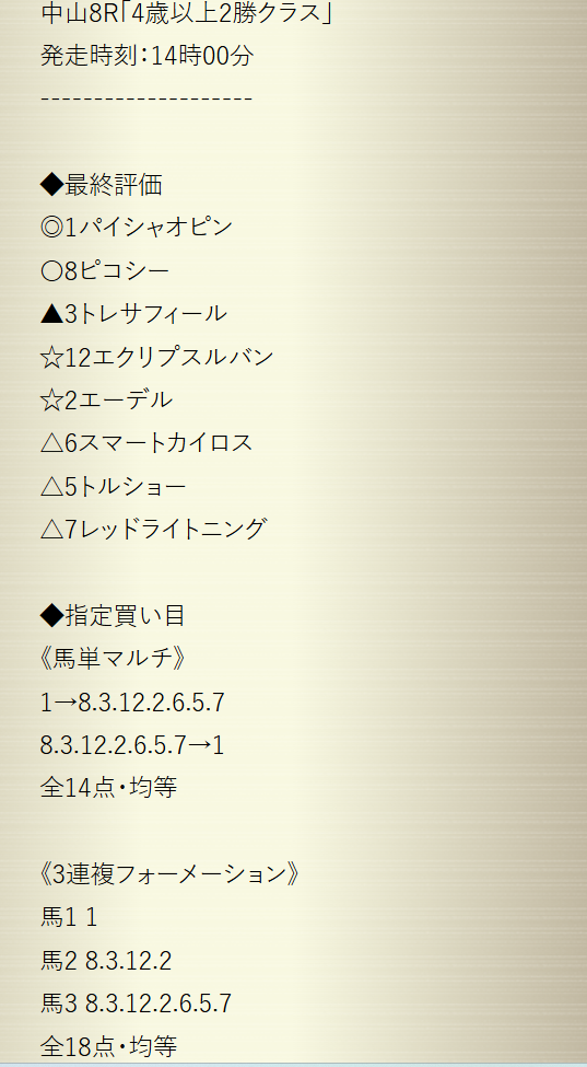 先週は単複でドカン、今週は障害戦をきっちり仕留める。無料とは思えん安定感やな。