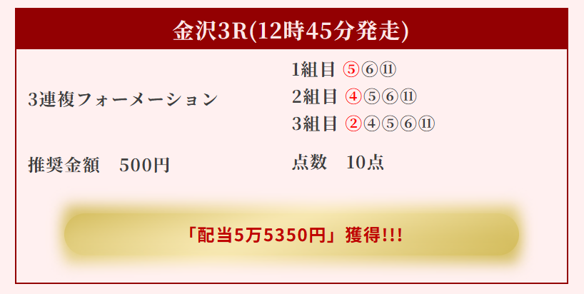 金沢3R予想、3連複フォーメーション買い目10点予想