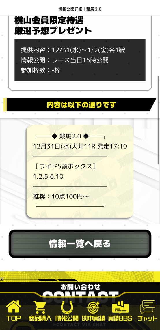 年末に最高の的中もらえました、しかも期間限定の無料情報。