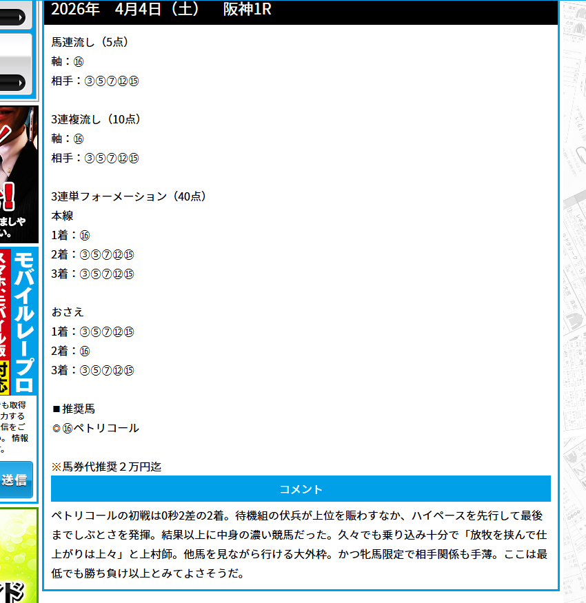 まさにトレセン情報っていう予想ですね、朝一のレースから完全無料予想で3連単万馬券的中で11万獲得は軍資金集めの強みになります!