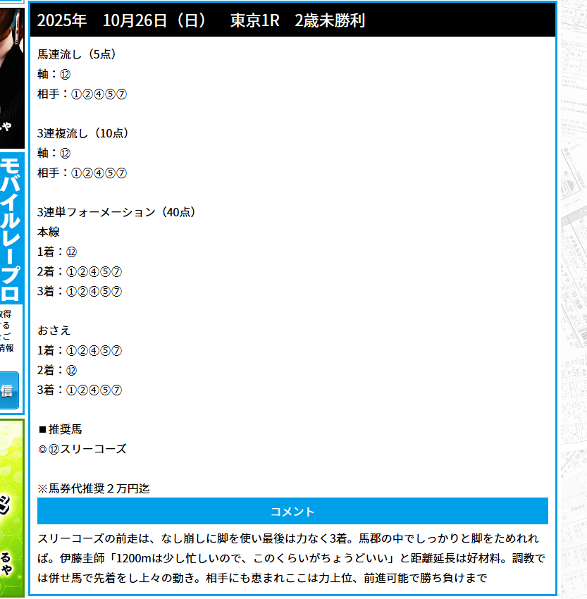 朝一の無料情報だから全馬券種馬券買う時間がなかった、けど3連単だけ買えて万馬券ゲット!